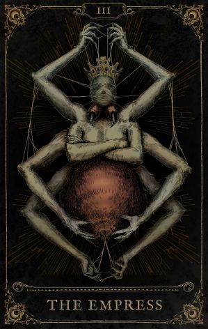 Once, the sight of The Empress meant good tidings. It still means abundance: countless children and eyes and legs, fine silk weaving you into the tightest cage.