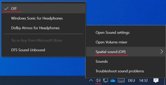 - Select “Spatial sound" and set it to “Off"