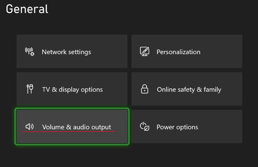 - In your Xbox Series X|S settings in the General tab, select “Volume & audio output"