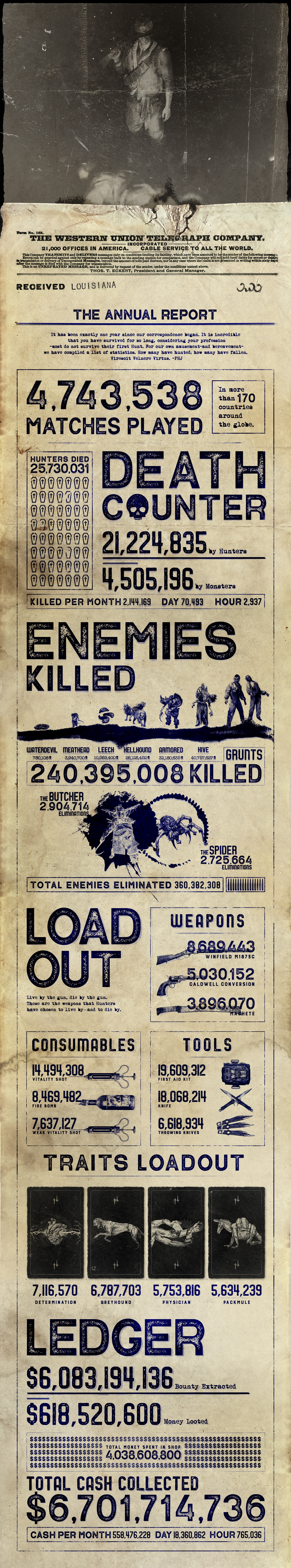 Afterwards, Update 2.0 kept the ball rolling with the addition of the Dark Sight Boost, looting, bear traps, the hive bomb, a flare pistol, and the Beastface and Tomahawk traits. These were soon followed by fog, crossbows, throwing knives, weapons with silencers, a combat axe, the Bolt Thrower and Bolt Seer traits, a reporting system, mission accolades, and more equipment. Next, the Water Devil, the ducks, water-based sound traps, liquid fire bombs, waxed dynamite, and rank and prestige badges were added as well. And that only brings us up to Update 2.3.