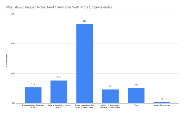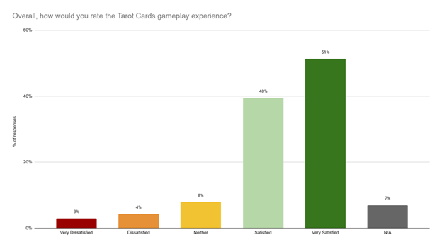 Tarot Cards had the highest number of satisfied responses across any feature we have released. We are happy that so many of you loved this new feature and had high praise for it. And as previously announced, because of your positive response, we are bringing back Tarot Cards for Update 2.6.