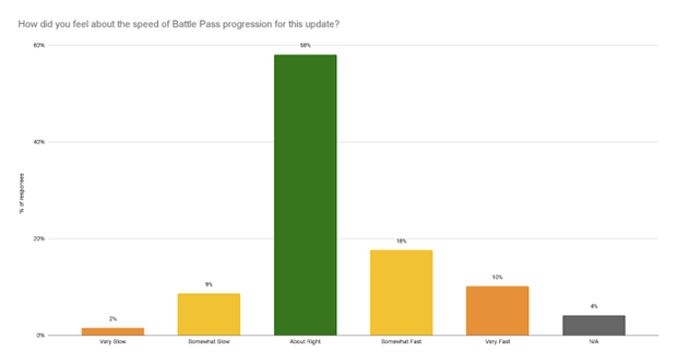 We are also happy to see that the speed of the progression within the Battle Pass was within the right tempo for 58% of you. While 28% of players did report that it was slightly fast, upon further investigation we noticed 75% of those players played Hunt more than 10 hours a week. We will continue to experiment with the duration and progression speed of our Battle Pass into next year. We thank you for giving us the time and space to do so.