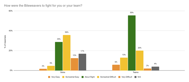 Your difficulty rating closely mirrors what we saw from our internal playtests, with larger portions of solo players having more difficulty in fighting the Bileweavers, while teams largely had a more balanced experience.